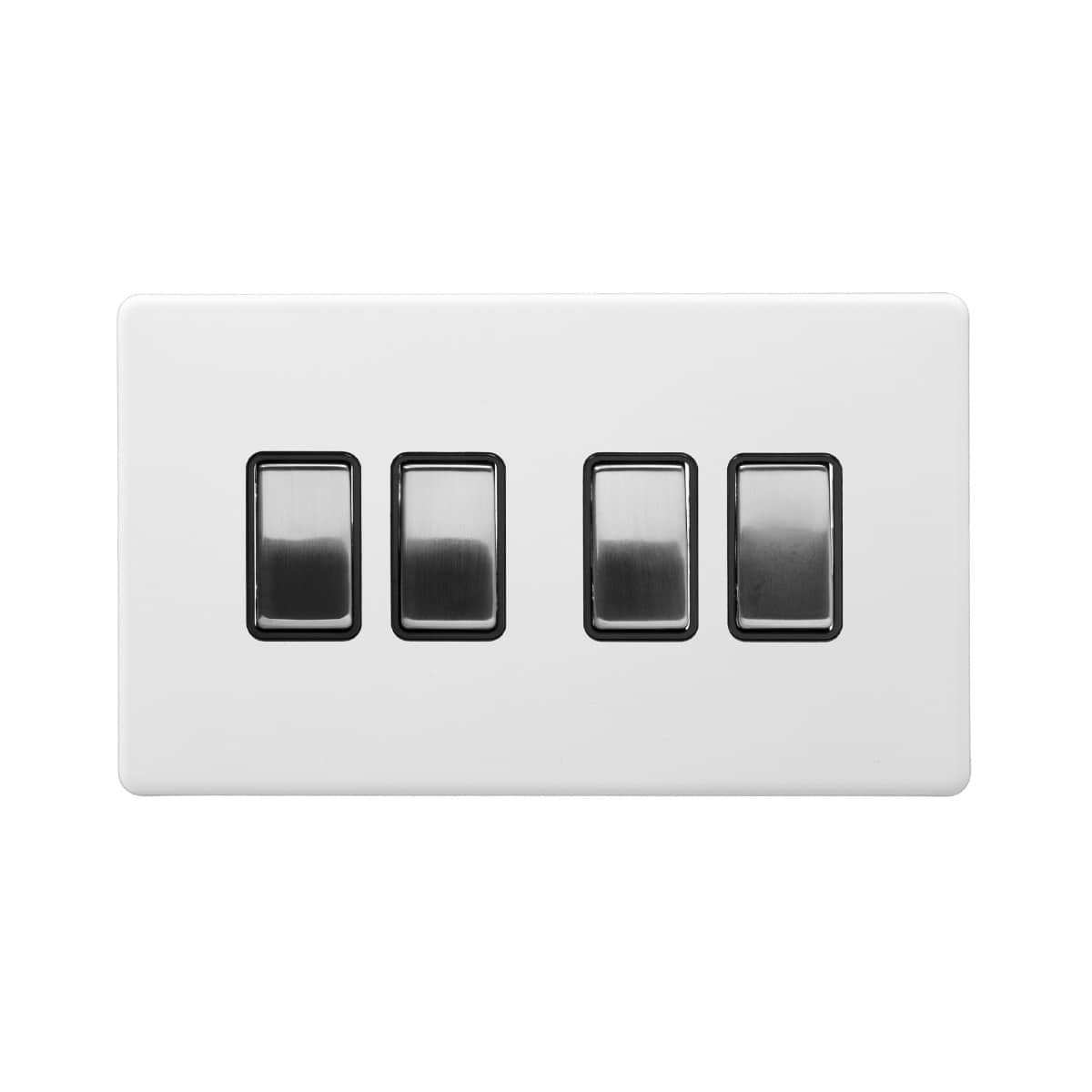 Soho Lighting Primed Paintable 4 Gang Intermediate switch with Brushed Chrome Switch and Black Insert