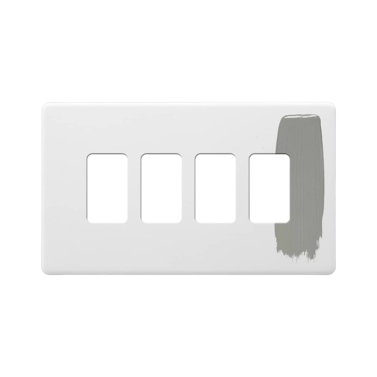 This Primed Paintable 4 Gang RM Rectangular Module Grid Plate is a luxury paintable primed plate. This innovative design allows you to match your switches and sockets with your preferred wall colour for a seamless finish.