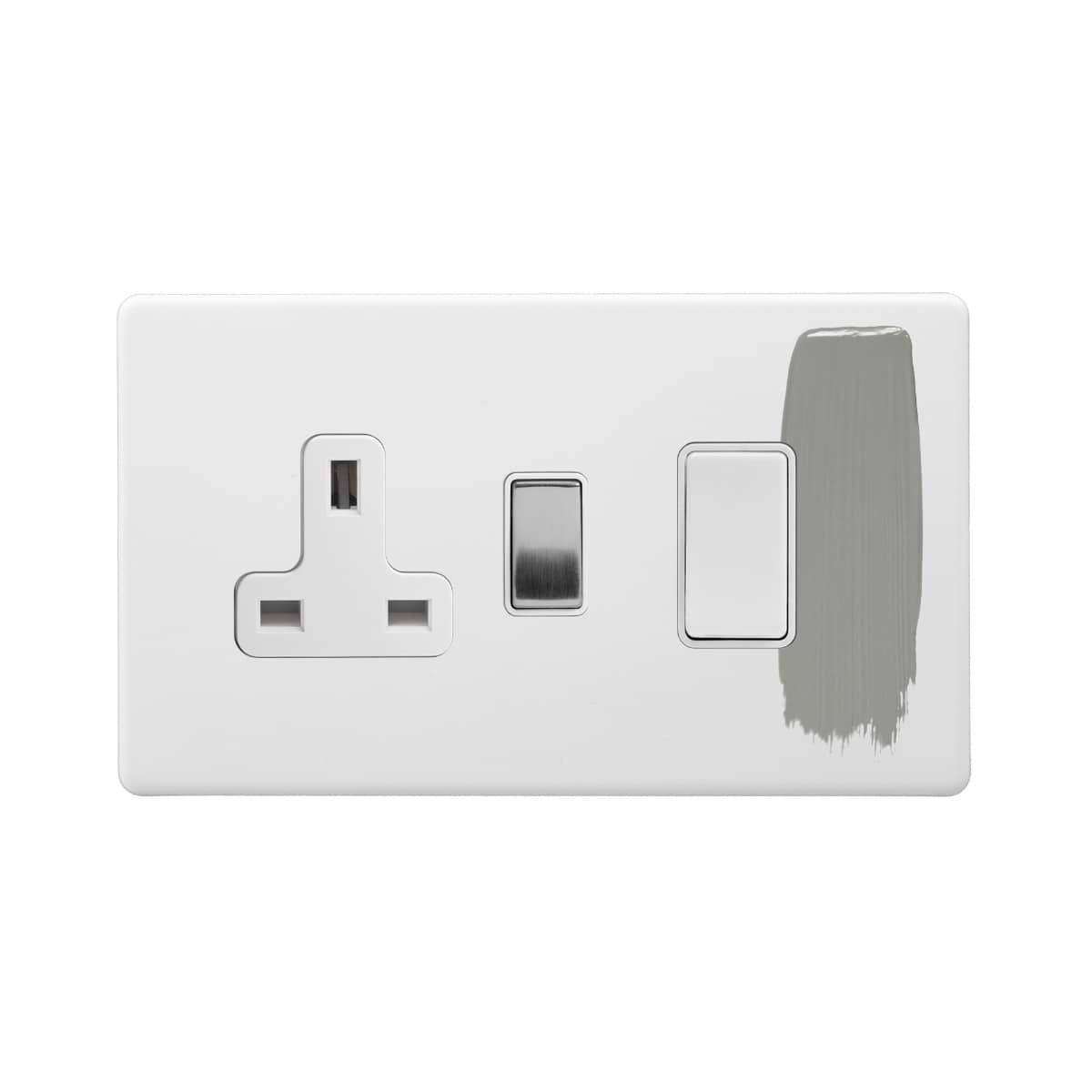 This Primed Paintable 45A Cooker Control Unit with Brushed Chrome Switch and White Insert is a luxury paintable primed plate with a brushed chrome switch. This innovative design allows you to match your switches and sockets with your preferred wall colour for a seamless finish.