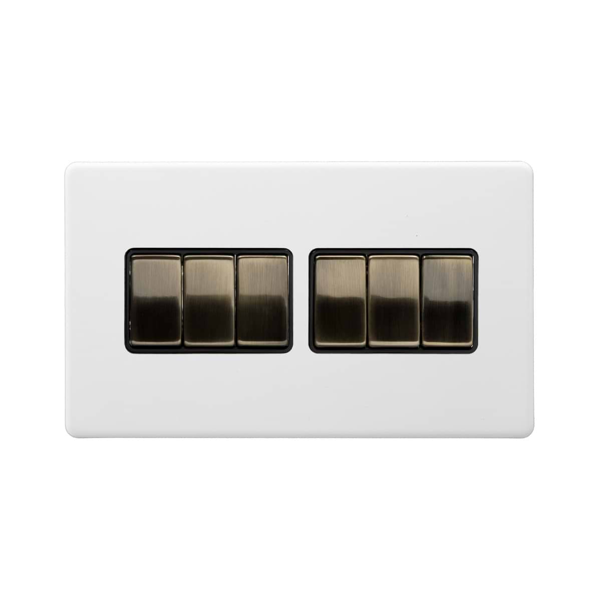 Soho Lighting Primed Paintable 6 Gang 2 Way 10A Light Switch with Antique Brass Switch