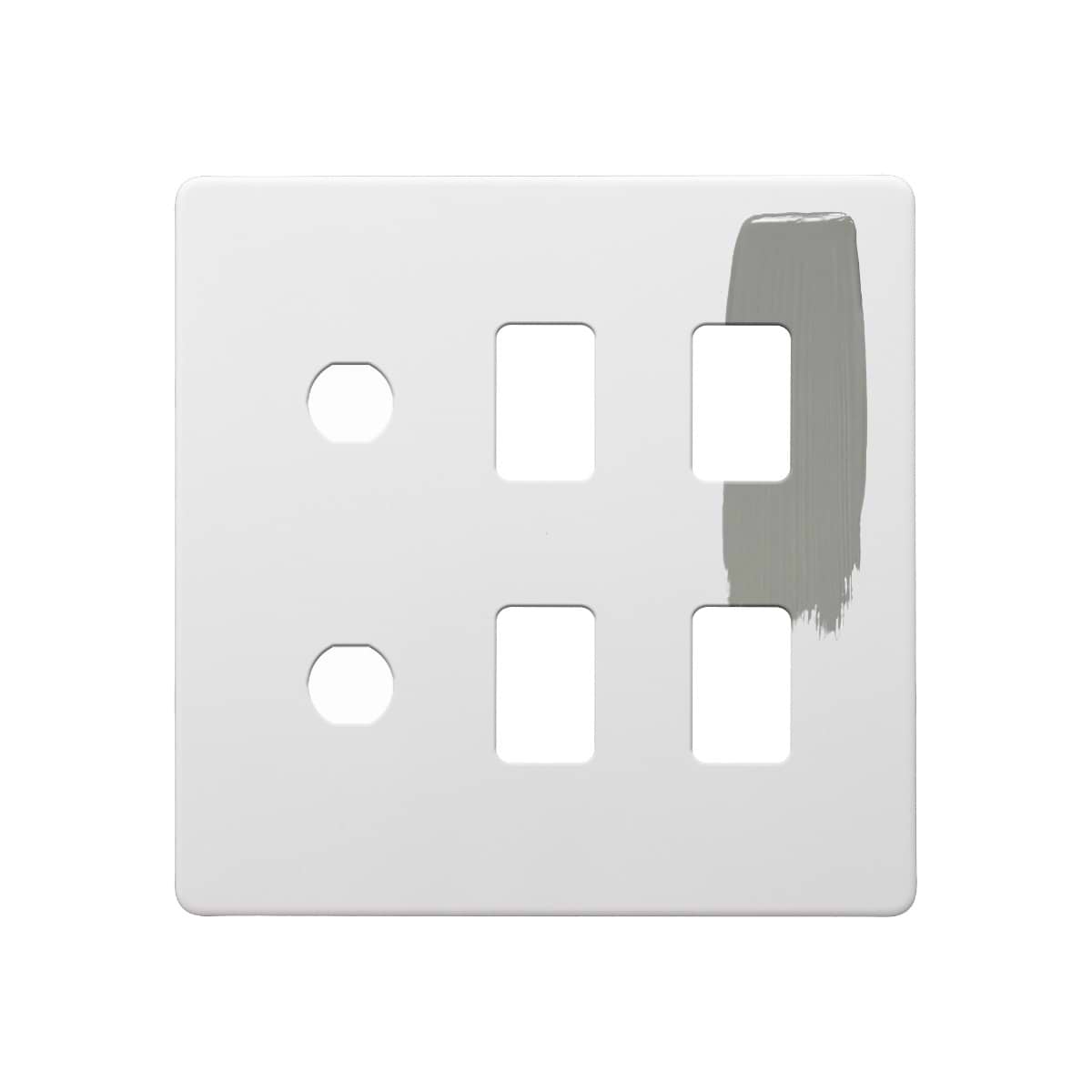 This Primed Paintable 6 Gang 4RM+2CM Dual Module Grid Plate is a luxury paintable primed plate. This innovative design allows you to match your switches and sockets with your preferred wall colour for a seamless finish.