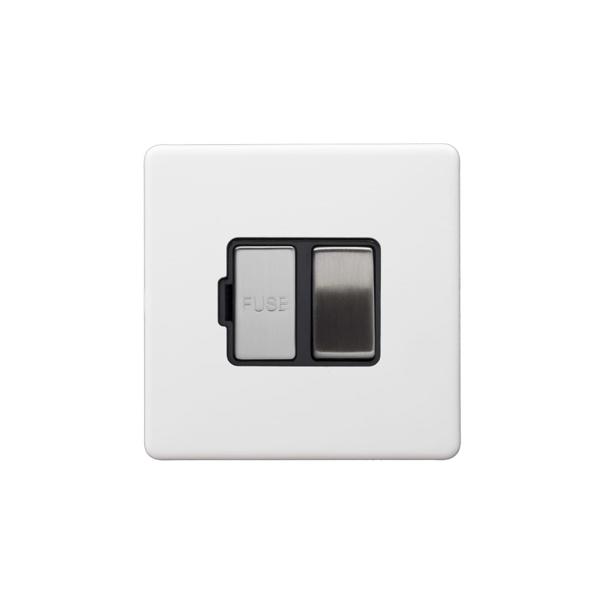 This Primed Paintable Switched Fused Connection Unit (FCU) 13A Double Pole with Brushed Chrome Switch and Black Insert is a luxury paintable primed plate with a brushed chrome switch. This innovative design allows you to match your switches and sockets with your preferred wall colour for a seamless finish.