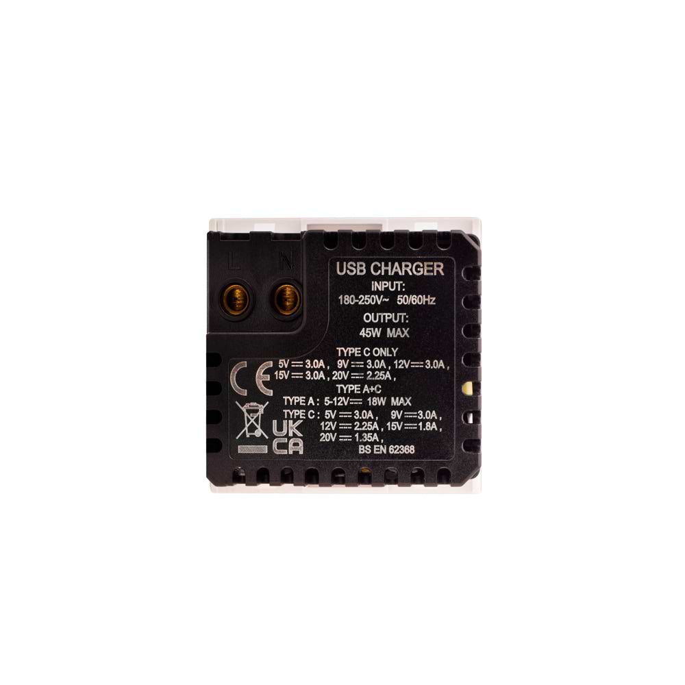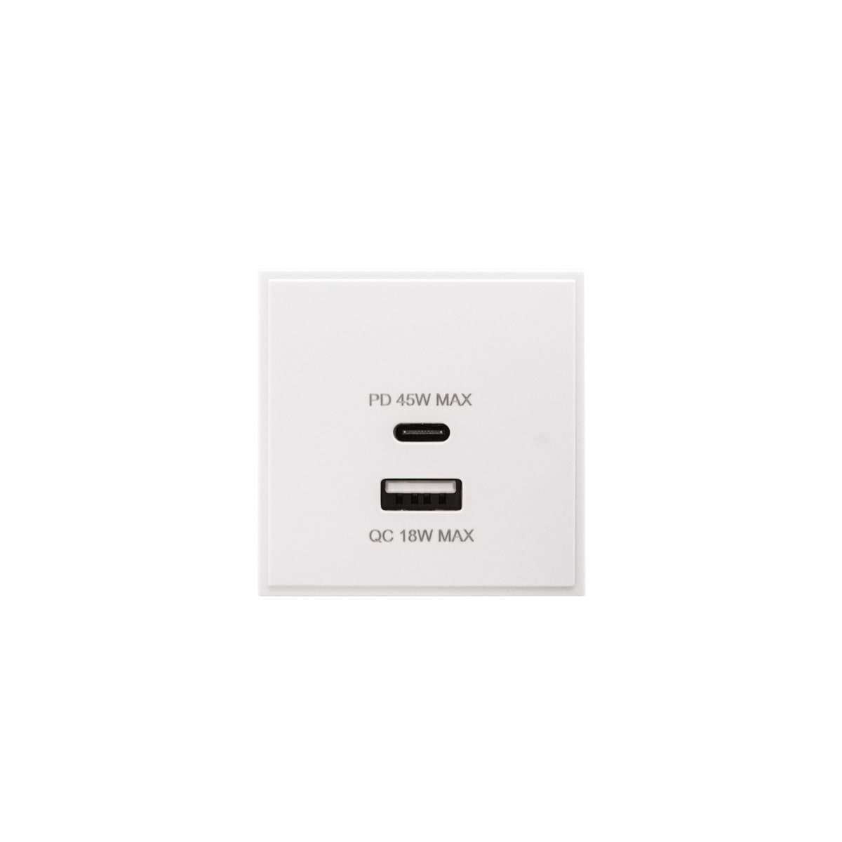 This Silk White Dual Fast Charge USB A+C Charger Euromodule 45W Max 50mmx 50mm has a white finish and delivers both looks and feel at a very competitive price point.