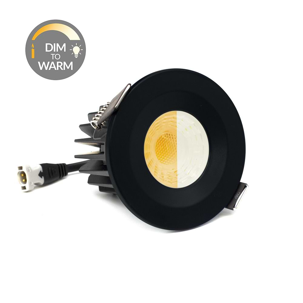 Please note that this downlight does not dim in the traditional sense, but instead changes colour temperature and tone between 1800K (sunset white) and 3000k (warm white) using a dimmer switch. However, the lumen output of the light is lower when operating at 1800K.