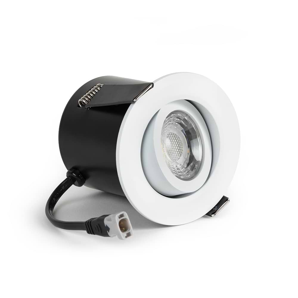 High CRI LED downlights in a beautiful White finish. This high CRI tiltable White LED downlight from our collection of Soho Lighting dimmable fire rated downlights has a 3000k Cool White colour temperature.