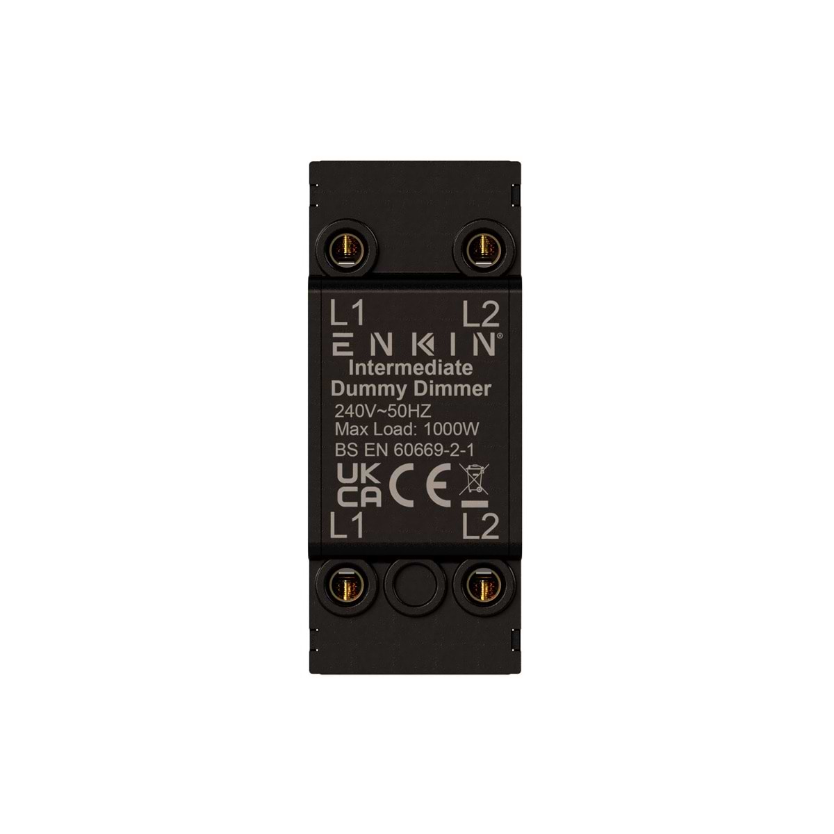 This module uses an Enkin Intermediate Dummy Dimmer, designed to replace a simple on/off rocker switch for a dimmer module with intermediate switch capabilities. This Dummy Dimmer does not function as a dimmer, but acts as an intermediate on/off switch, meaning you can control your lights from multiple locations.