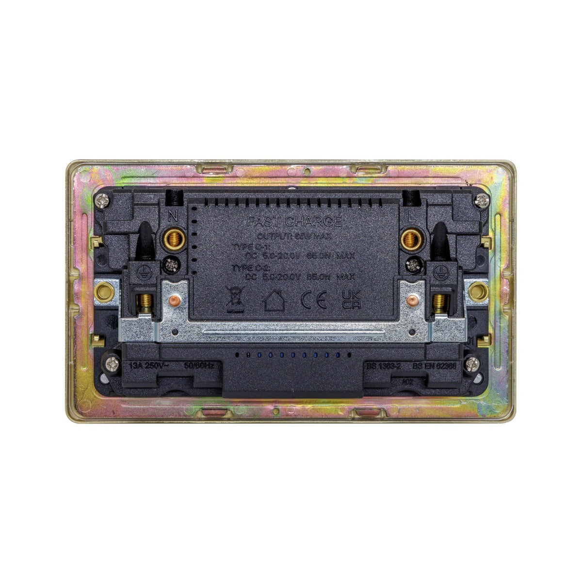 Soho Lighting White Metal Flat Plate 2 Gang 65W USB C+C Socket (13A Socket + 2 USB C Ports)