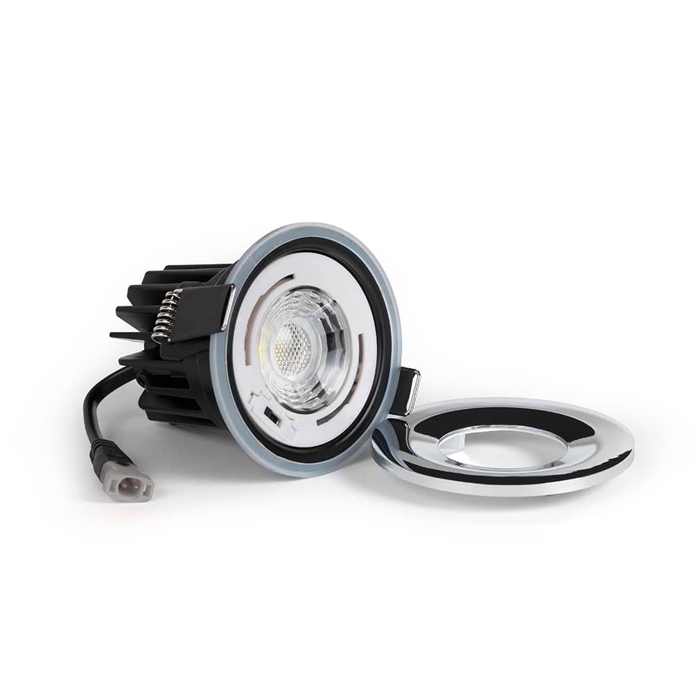 Soho Polished Chrome LED Downlights, Fire Rated, Fixed, IP65, CCT Switch, High CRI, Dimmable