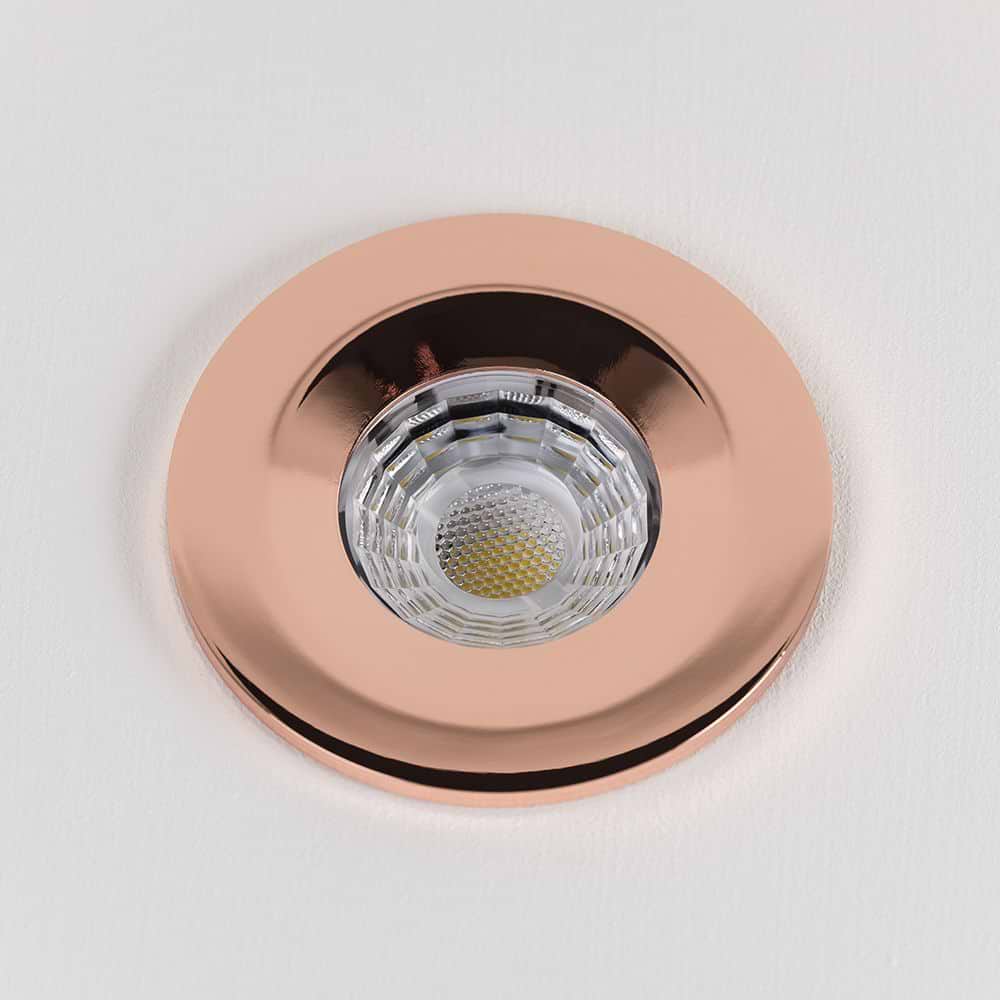Soho Polished Copper LED Downlights, Fire Rated, Fixed, IP65, CCT Switch, High CRI, Dimmable