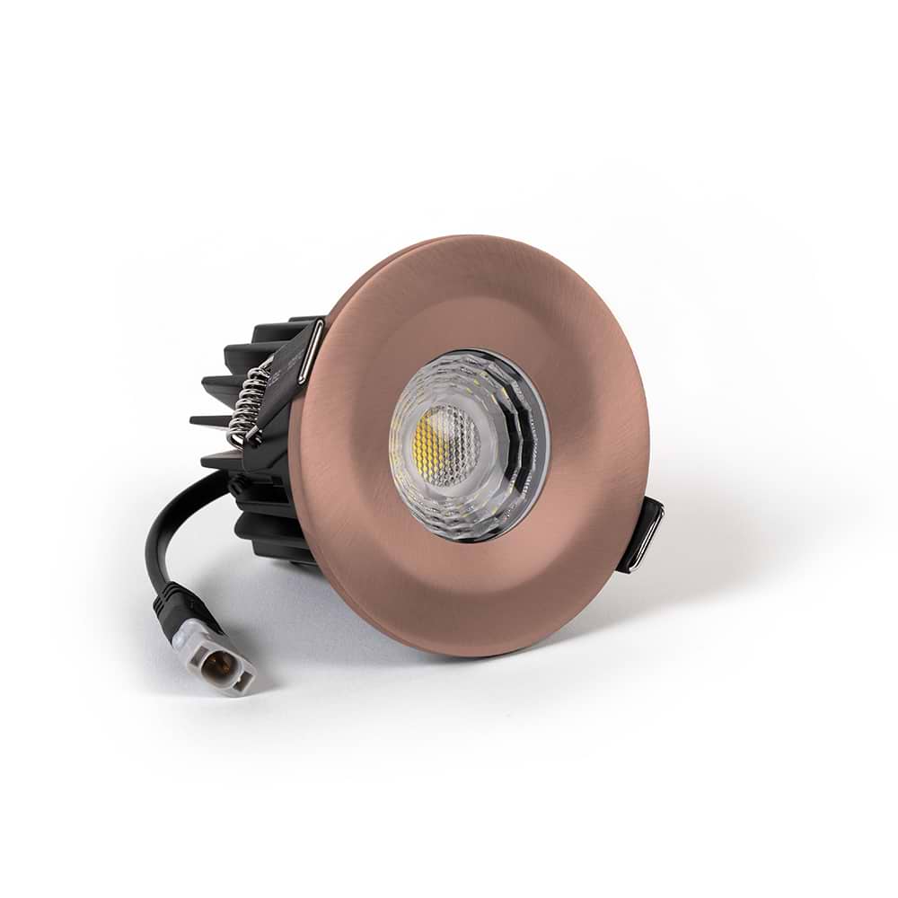 Soho Satin Rose Gold LED Downlights, Fire Rated, Fixed, IP65, CCT Switch, High CRI, Dimmable