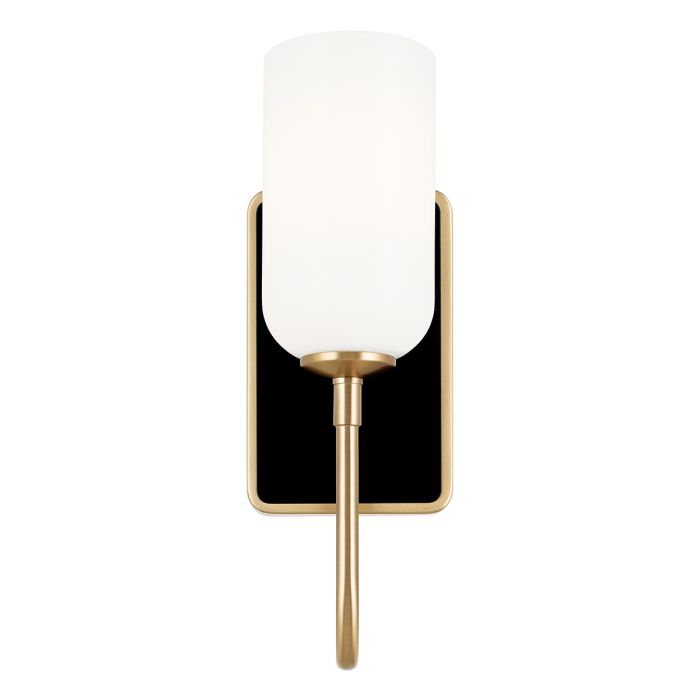Inspired by simplicity, the Solia 1 light wall sconce exudes soft Contemporary style. It's dual-finished champagne bronze and black backplate adds visual interest. Solia's refined opal glass illuminates in Contemporary sophistication. IP44 rated for Bathrooms.
