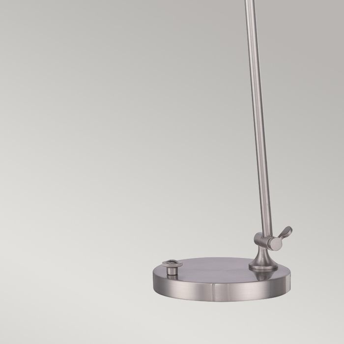 RETIRING COLLECTION MODEL - CHECK STOCK AVAILABILITY. Lighting has evolved to include designs that are not only beautiful but energy-efficient as well. Proper illumination is key and the LED bulb is perfect for providing bright light when you need it. If you prefer a more ambient glow, there is an adjustable dimmer knob on the base. The Spencer collection is ideal for task lighting, beside a sofa or at a desk. this portable is available in a Brushed Nickel finish.