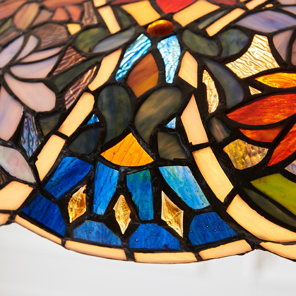 The Sullivan pendant is a richly coloured floral Tiffany design, teamed with a satin black fitting. Matching items available and compatible with LED lamps