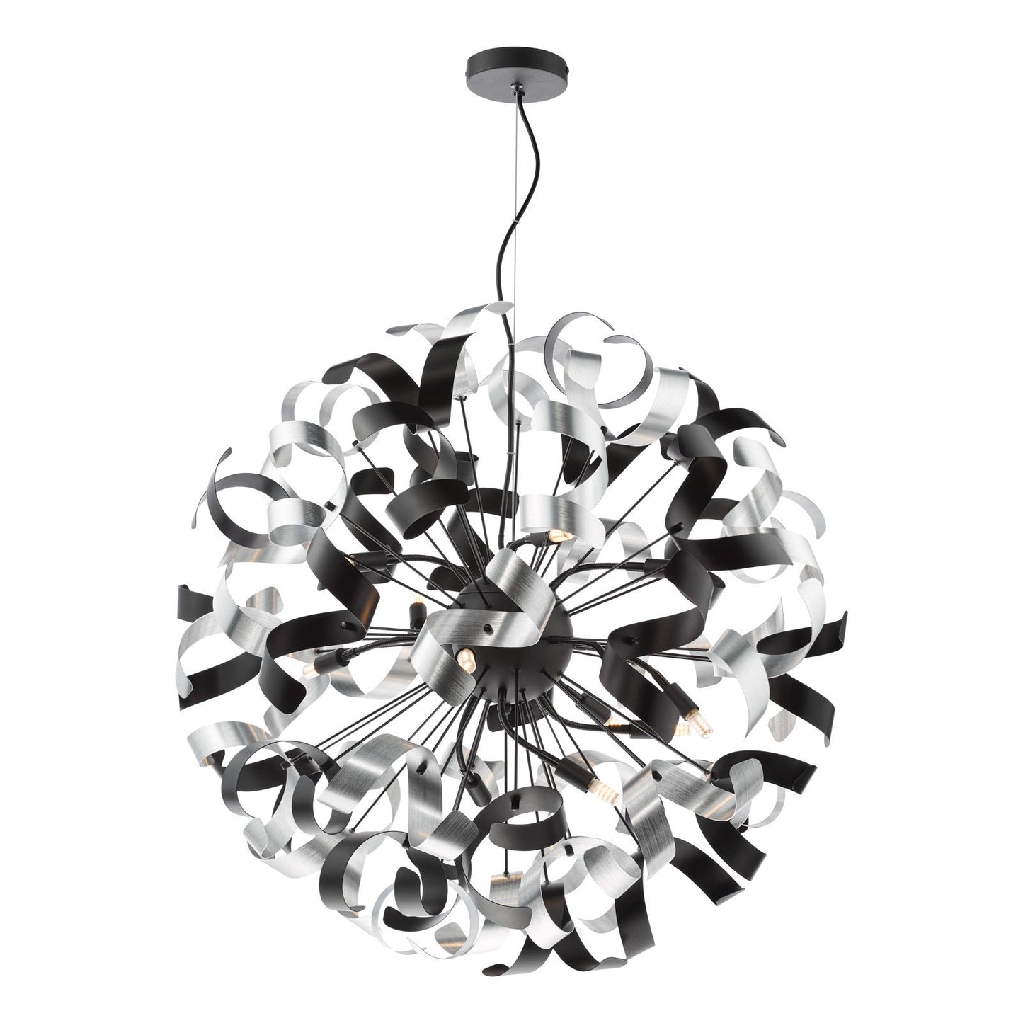 Swash 12 Light Pendant Black With Black & Aluminium Ribbons