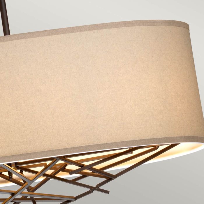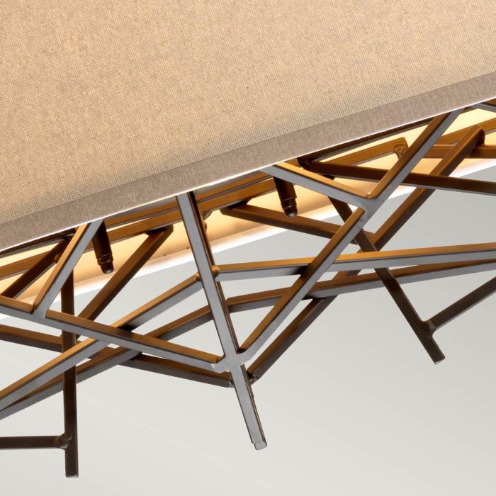 The standout detail of the UK made Taiko is its unique metal cluster. This handsome visual motif, an artistically arranged gathering of intricate elements, creates a visual excitement and energy, cleverly balanced by a crisp neutral linen shade. Made in England.