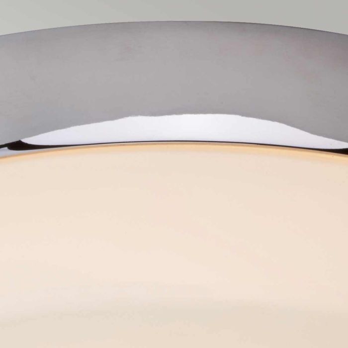 The Tamar flush fitting is IP44 rated for bathroom use but also suitable for corridors and low ceiling living spaces. The cylindrical opal glass is surrounded by a mild steel frame that is plated in a Polished Chrome finish. The classic details of the thumb screws and finial allow this simple flush fitting to suit both a traditional or contemporary situation. Supplied with a quality GX53 LED lamp which is energy efficient and gives very even light distribution.