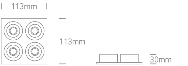 4x1W LED adjustable recessed spot, mini series range, IP20.