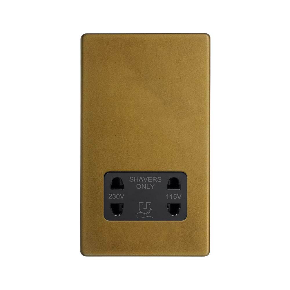 This Old Brass Traditional Plate 1 Gang Shaver Socket has an old brass finish that has been carefully matched to original pieces of Edwardian brass work such as door handles and cabinetry details, giving a faithful representation of oxidised, un-polished, timeworn brass, with a rich, sumptuous honey matt patina.
