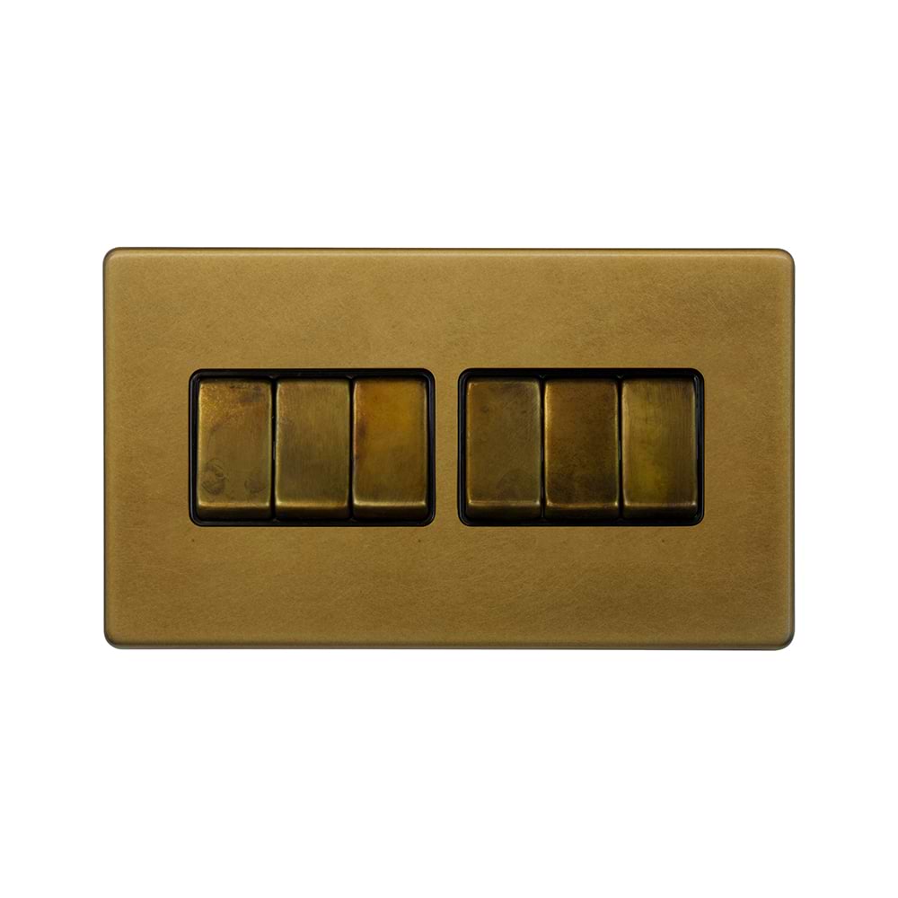 The Belgravia Collection Old Brass 10A 6 Gang 2 Way Switch