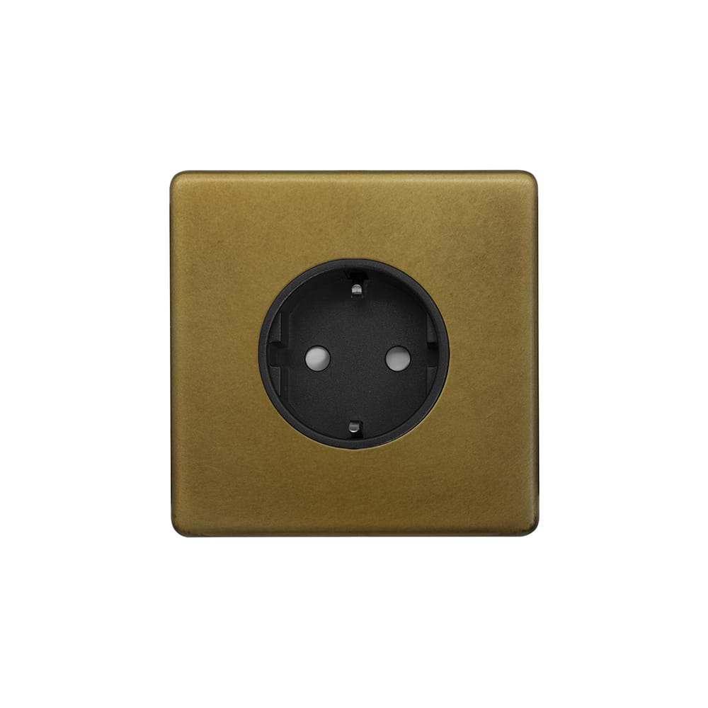 This Old Brass Traditional Plate 16A 1 Gang Euro Schuko Socket has an old brass finish that has been carefully matched to original pieces of Edwardian brass work such as door handles and cabinetry details, giving a faithful representation of oxidised, un-polished, timeworn brass, with a rich, sumptuous honey matt patina.