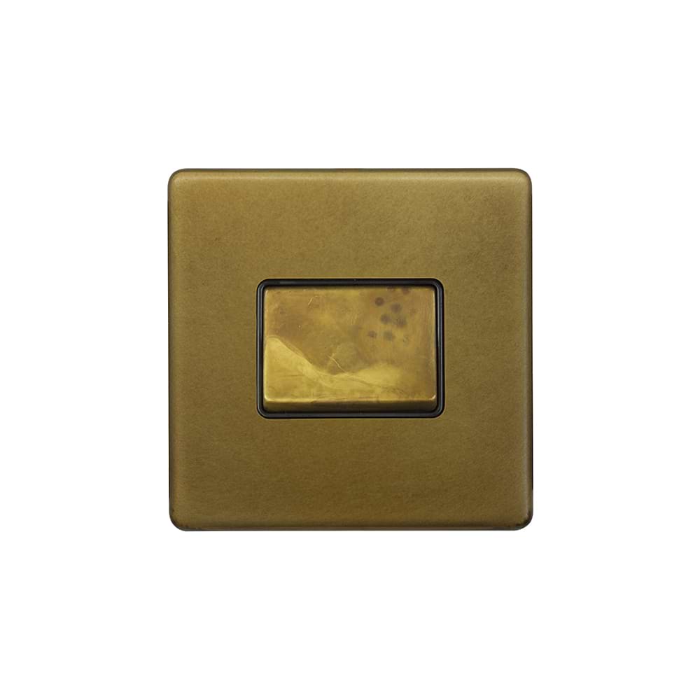 This Old Brass Traditional Plate 3-Pole Extractor Fan Isolator Switch has an old brass finish that has been carefully matched to original pieces of Edwardian brass work such as door handles and cabinetry details, giving a faithful representation of oxidised, un-polished, timeworn brass, with a rich, sumptuous honey matt patina.