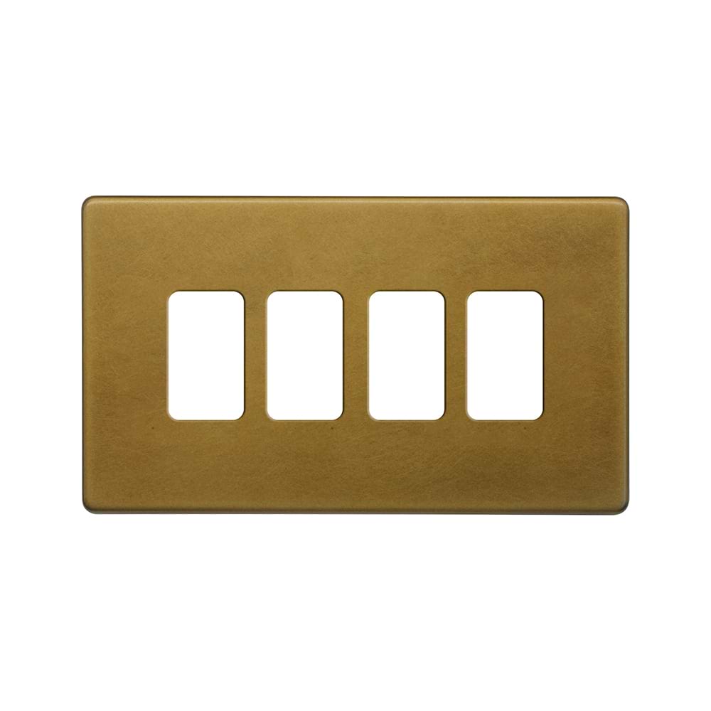 The Belgravia Collection Old Brass 4 Gang RM Rectangular Module Grid Switch Plate