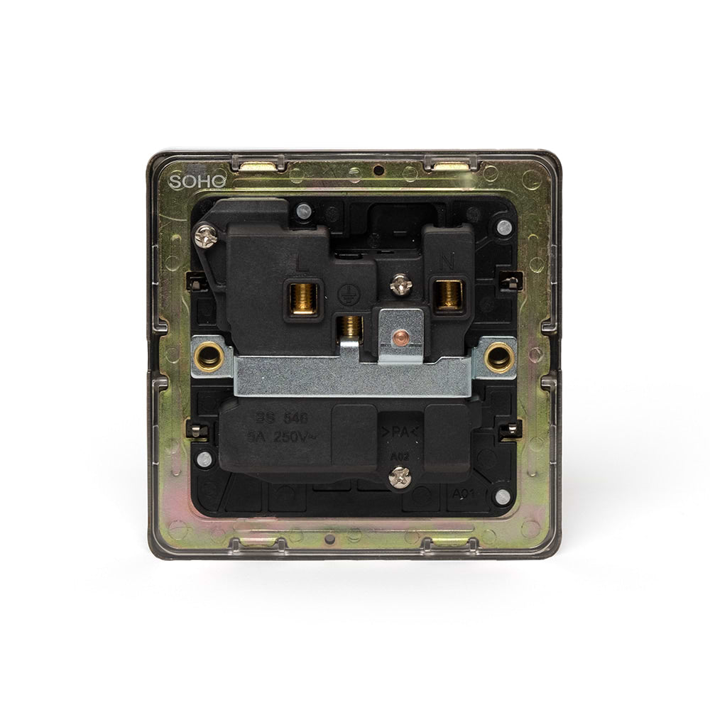 A 5 amp socket, also known as a light socket, or a lamp socket is used to provide lighting circuit in a room for floor and table lamps which can be controlled by a normal main light or dimming switch.