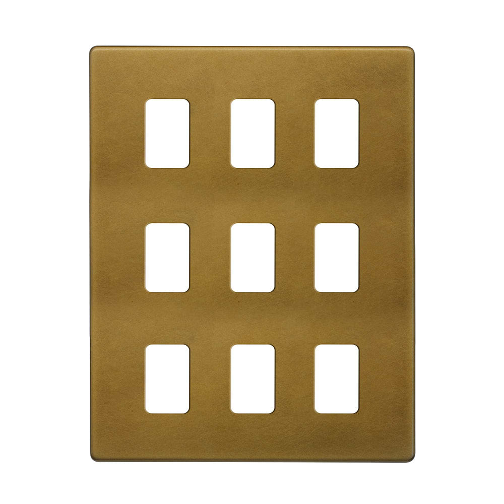 The Belgravia Collection Old Brass 9 Gang RM Rectangular Module Grid Switch Plate