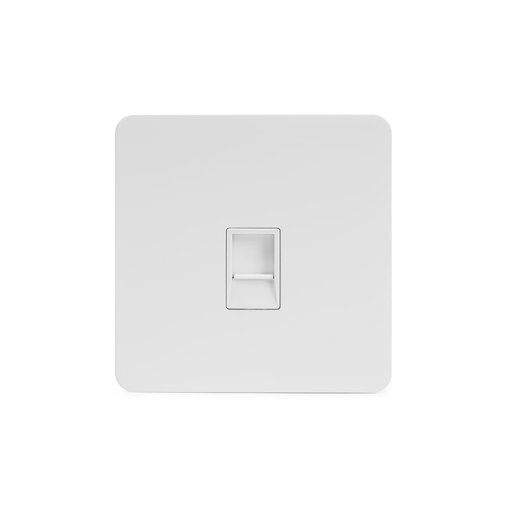 The Eldon Collection White Metal Flat Plate 1 Gang Data Socket RJ45 Ethernet Cat5/Cat6 Wht Ins Screwless