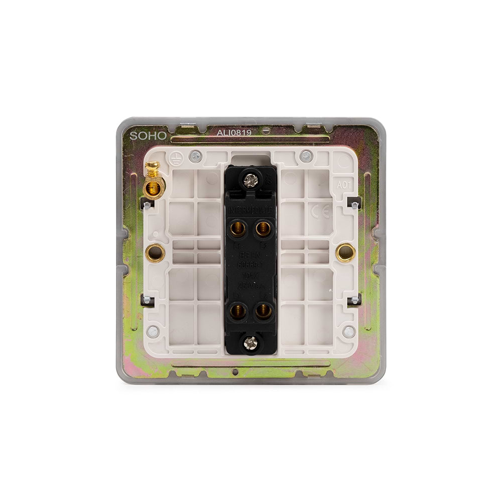 The fresh, clean look and neutral screwless finish of this screwless White Metal Flat Plate 1 Gang Intermediate Switch Wht Ins from Soho Lighting complements all interior design styles and finishes. The Eldon Collection is a popular choice for modern and contemporary styled homes and works seamlessly in white kitchens and rooms with neutral colours and clean lines.