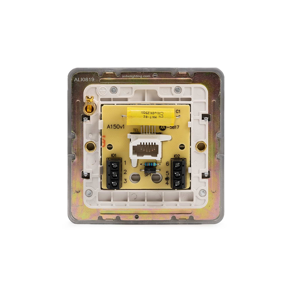 The fresh, clean look and neutral screwless finish of this screwless White Metal Flat Plate 1 Gang Telephone Master Socket,BT Wht Ins from Soho Lighting complements all interior design styles and finishes. The Eldon Collection is a popular choice for modern and contemporary styled homes and works seamlessly in white kitchens and rooms with neutral colours and clean lines.