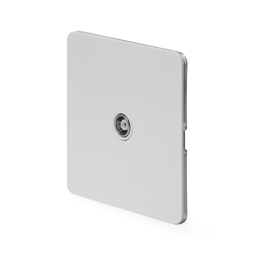 The Eldon Collection White Metal Flat Plate 1 Gang TV Aerial Coaxial Socket Wht Ins Screwless