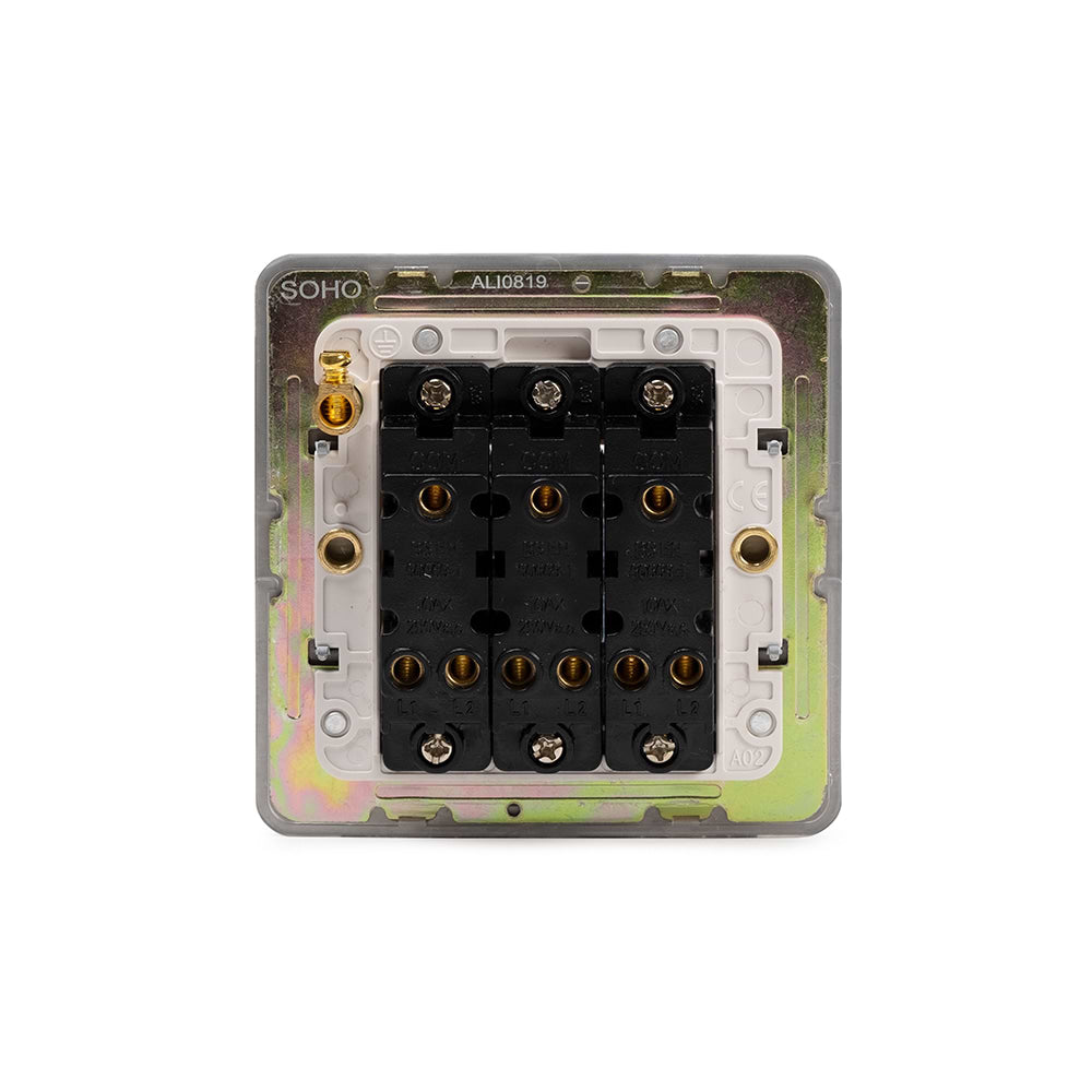 The fresh, clean look and neutral screwless finish of this screwless White Metal Flat Plate 10A 3 Gang 2 Way Switch Wht Ins from Soho Lighting complements all interior design styles and finishes. The Eldon Collection is a popular choice for modern and contemporary styled homes and works seamlessly in white kitchens and rooms with neutral colours and clean lines.