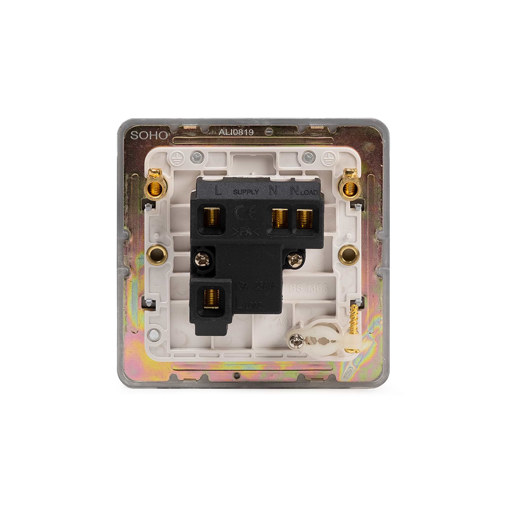 The fresh, clean look and neutral screwless finish of this screwless White Metal Flat Plate 13A Unswitched Connection Unit Flex Outlet Wht Ins from Soho Lighting complements all interior design styles and finishes. The Eldon Collection is a popular choice for modern and contemporary styled homes and works seamlessly in white kitchens and rooms with neutral colours and clean lines.