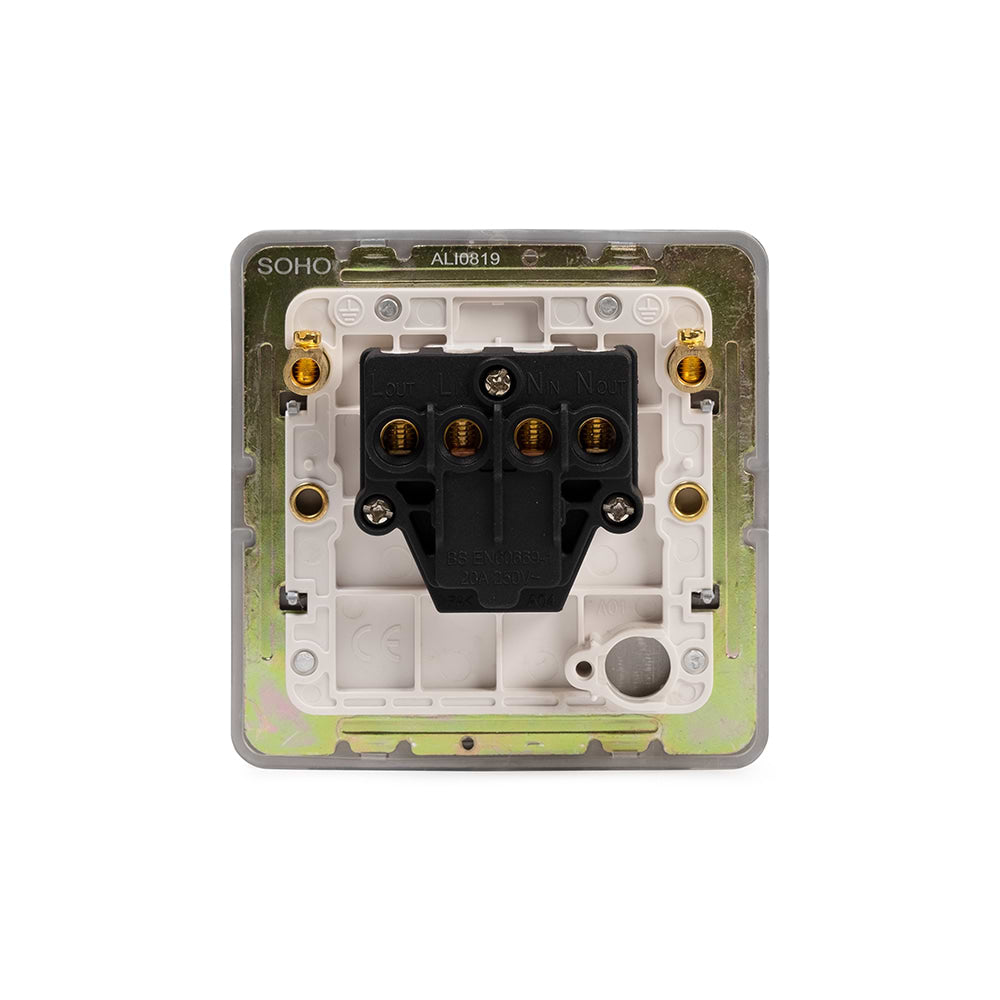 The fresh, clean look and neutral screwless finish of this screwless White Metal Flat Plate 20A 1 Gang Double Pole Switch Wht Ins from Soho Lighting complements all interior design styles and finishes. The Eldon Collection is a popular choice for modern and contemporary styled homes and works seamlessly in white kitchens and rooms with neutral colours and clean lines.