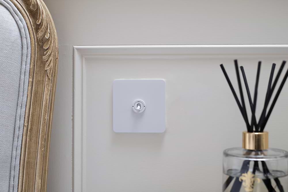 The fresh, clean look and neutral screwless finish of this screwless White Metal Flat Plate 20A 1 Gang intermediate Toggle Switch from Soho Lighting complements all interior design styles and finishes. The Eldon Collection is a popular choice for modern and contemporary styled homes and works seamlessly in white kitchens and rooms with neutral colours and clean lines.
