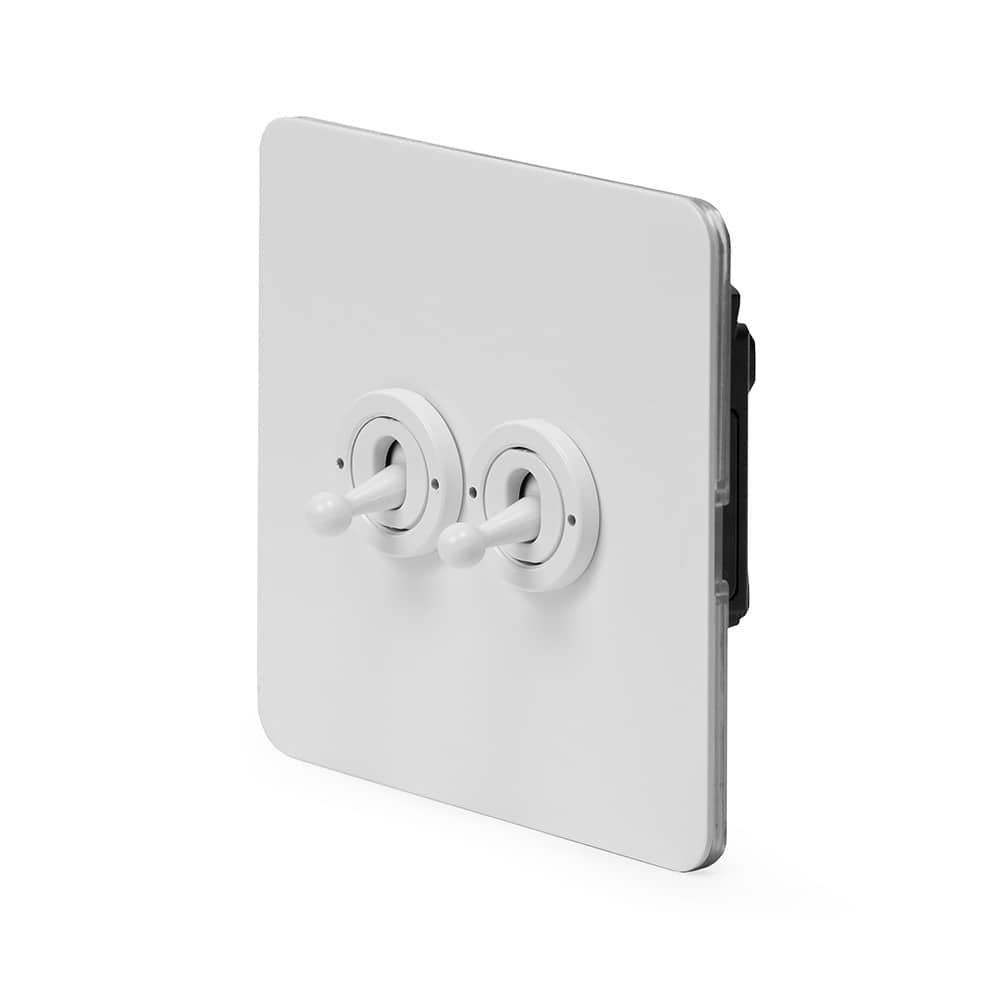 The Eldon Collection White Metal Flat Plate 20A 2 Gang 2 Way Toggle Switch Screwless