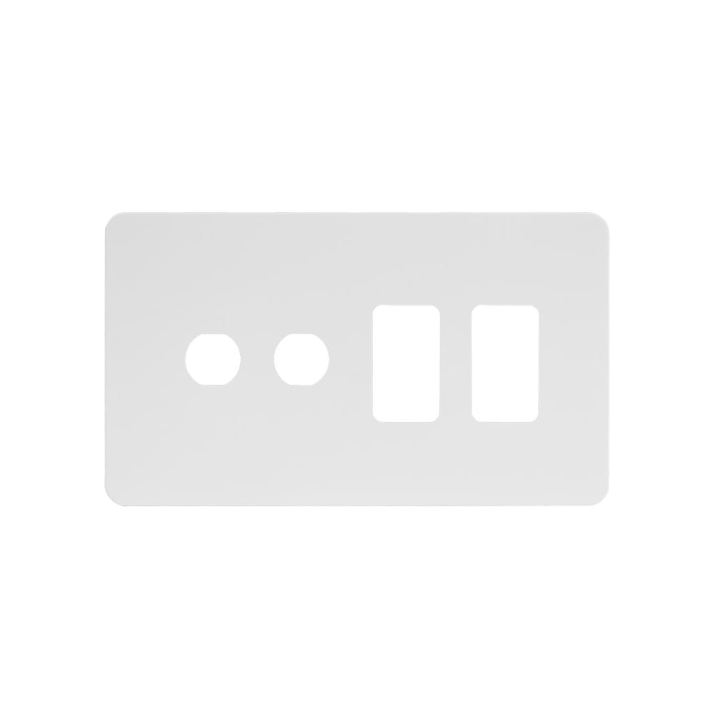 The Eldon Collection White Metal Flat Plate 4 Gang 2RM+2CM Dual Module Grid Switch Plate