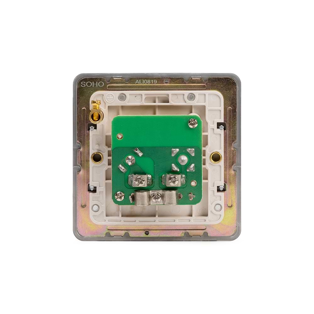 The fresh, clean look and neutral screwless finish of this screwless White Metal Flat Plate TV+ Satellite Socket Wht Ins from Soho Lighting complements all interior design styles and finishes. The Eldon Collection is a popular choice for modern and contemporary styled homes and works seamlessly in white kitchens and rooms with neutral colours and clean lines.