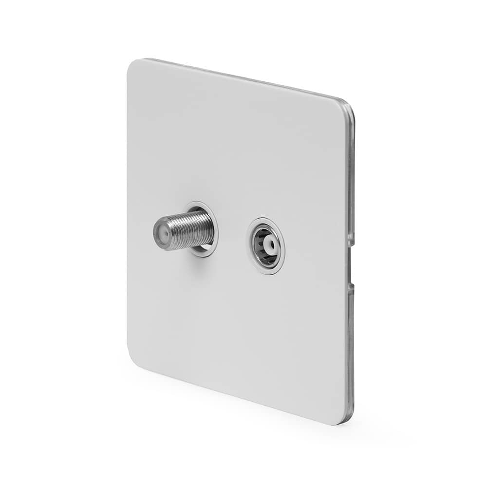 The Eldon Collection White Metal Flat Plate TV+ Satellite Socket Wht Ins Screwless