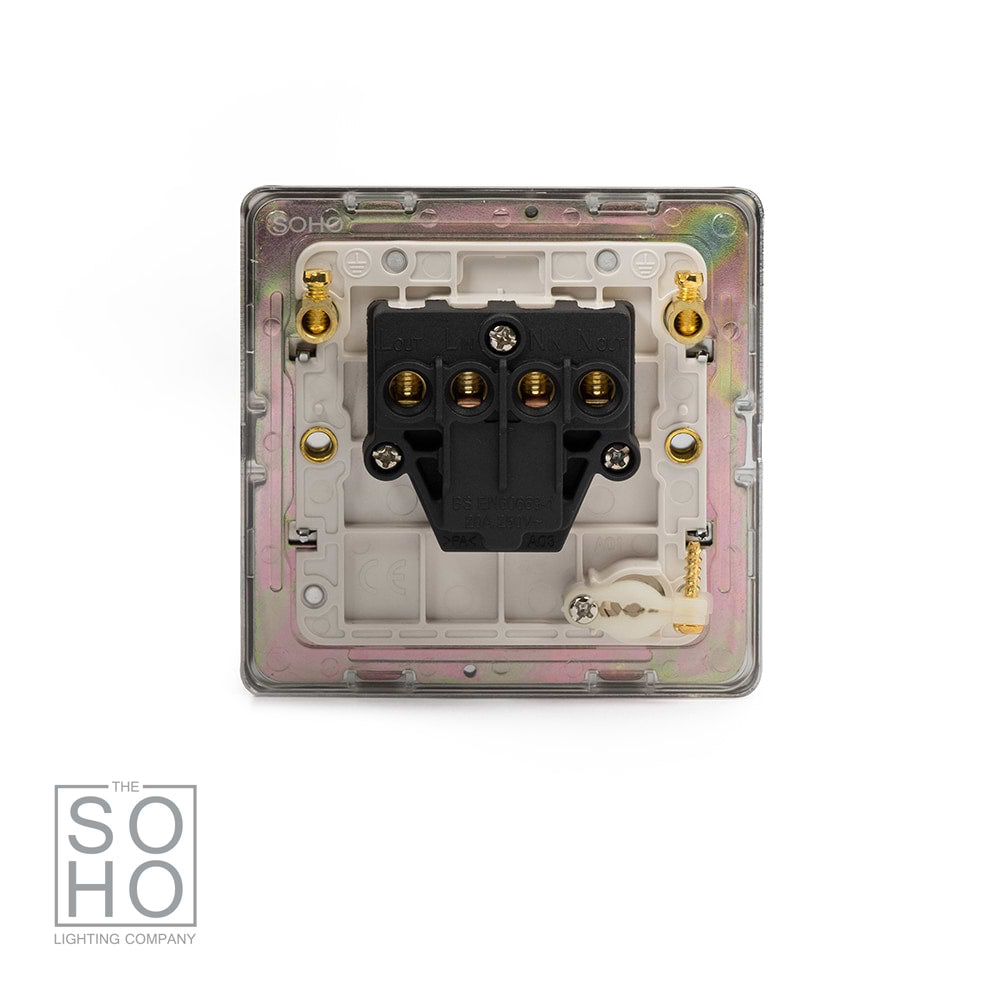 The Finsbury Collection Polished Chrome 1 Gang 20A Double Pole Switch Flex Outlet Wht Ins Screwless