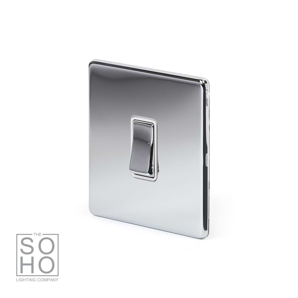 The Finsbury Collection Polished Chrome 1 Gang Intermediate Switch White Ins 10A Screwless