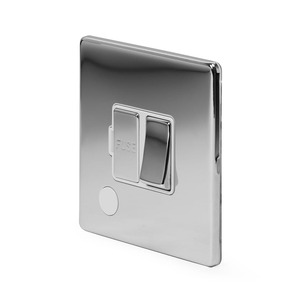 The Finsbury Collection Polished Chrome 13A Switched Fused Connection Unit (FCU) Flex Outlet Wht Ins Screwless
