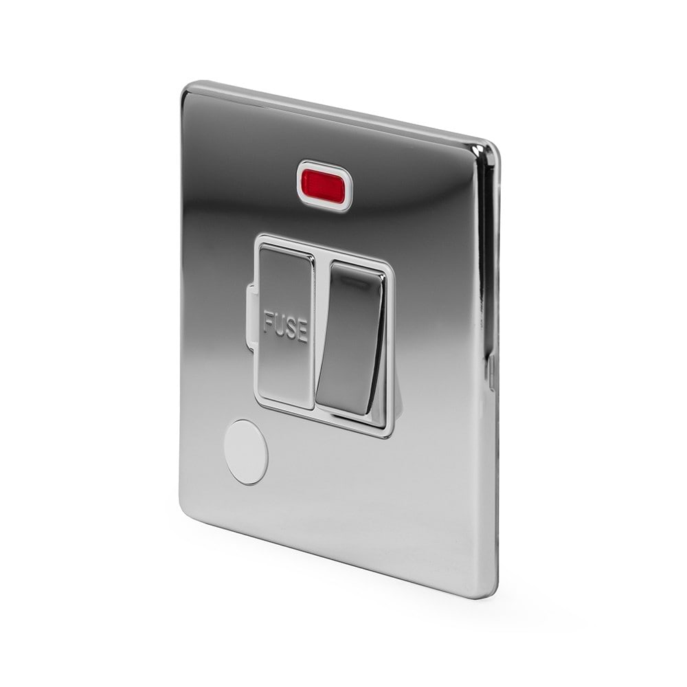 The Finsbury Collection Polished Chrome 13A Switched Fused Connection Unit (FCU) Flex Outlet With Neon Wht Ins Screwless