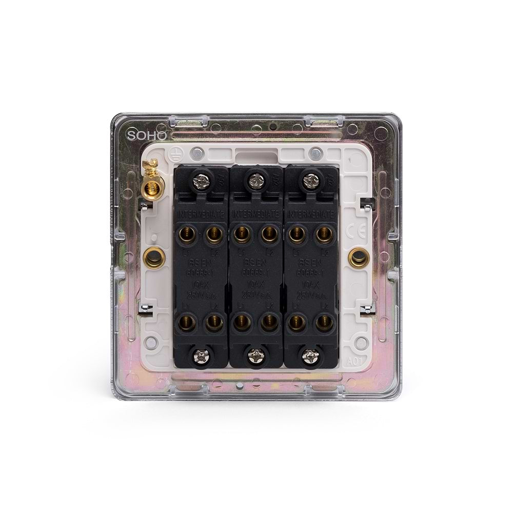 The Finsbury Collection Polished Chrome 3 Gang Intermediate switch Wht Ins Screwless