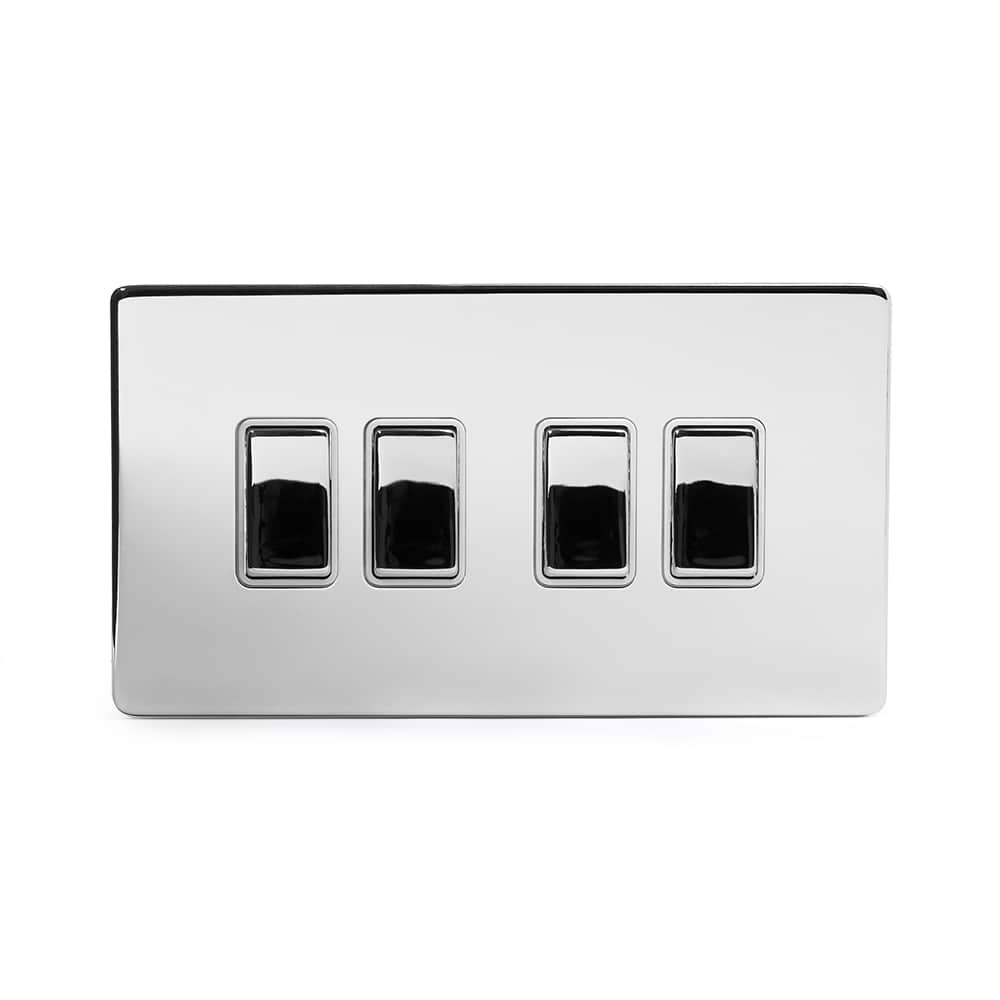 The Finsbury Collection Polished Chrome 4 Gang 2 Way 10A Light Switch Wht Ins Screwless