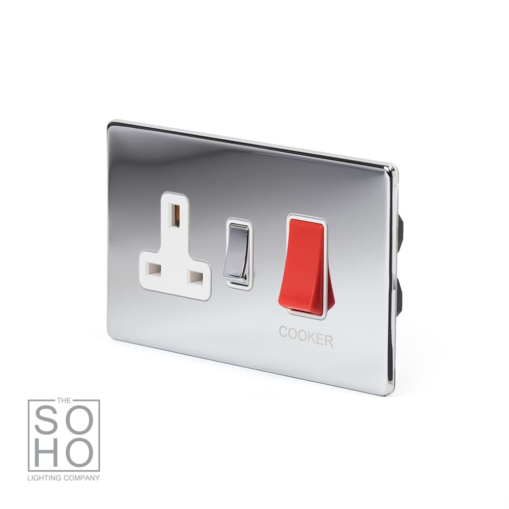 The Finsbury Collection Polished Chrome 45A Cooker Control Unit Wht Ins Screwless