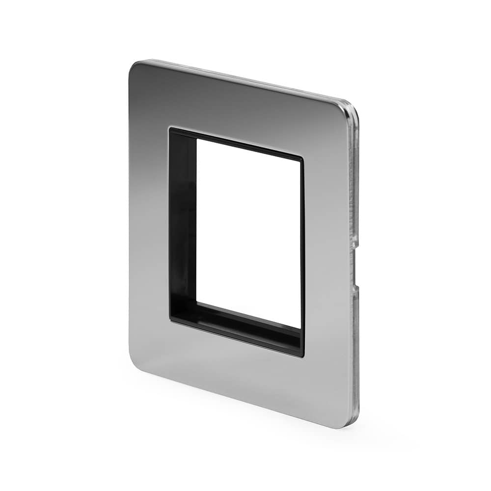 The Finsbury Collection Polished Chrome Black Insert Flat Plate 2 x25mm EM-Euro Module Faceplate
