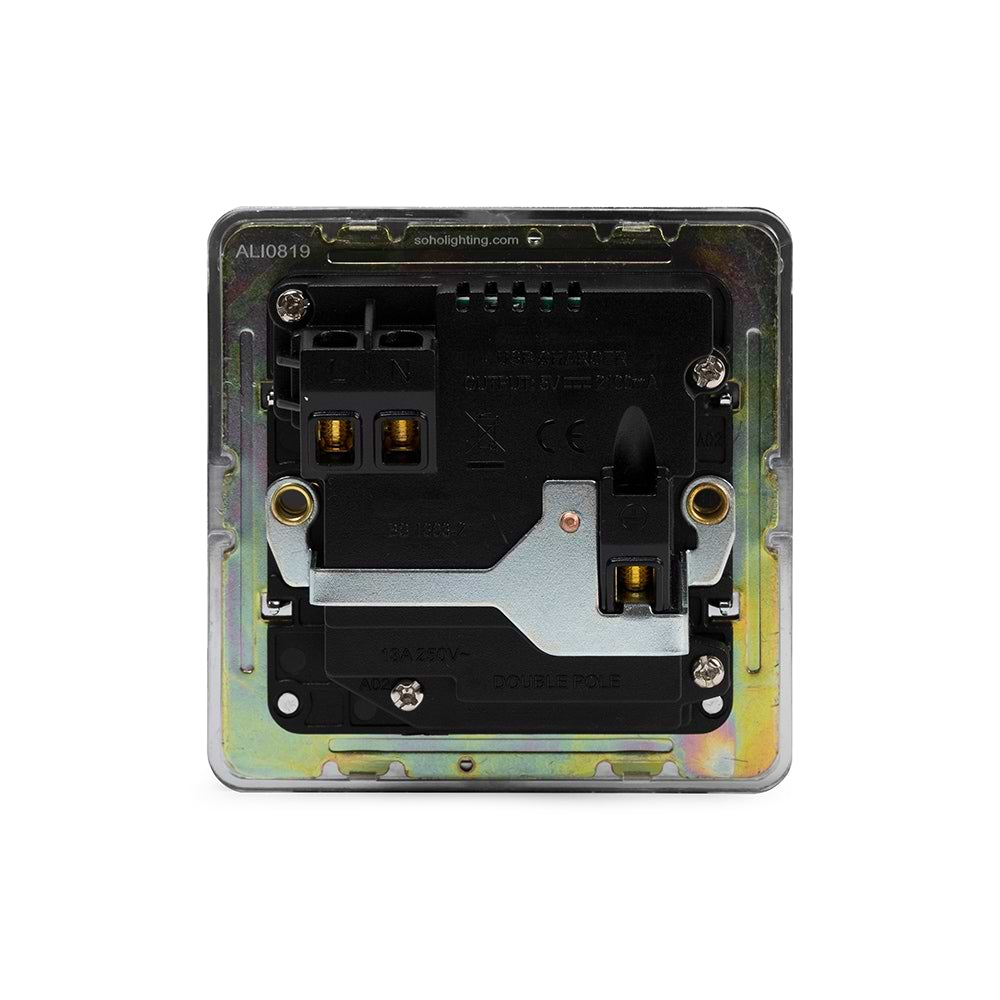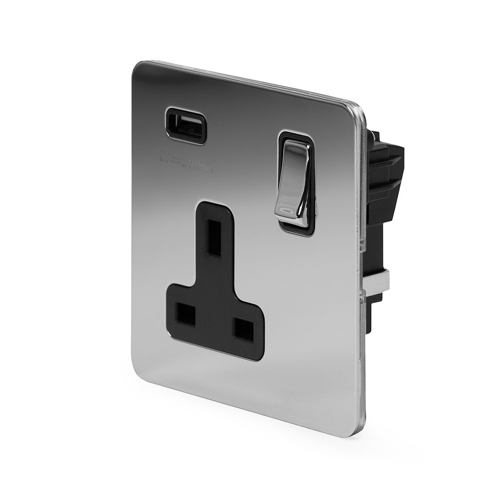 The Finsbury Collection Polished Chrome Flat Plate 1 Gang 13A DP Socket with USB-A 2.1A