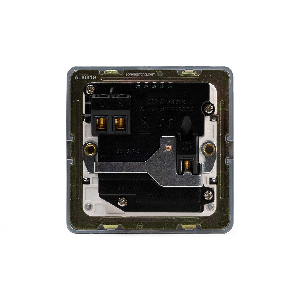 Polished Chrome is generally considered to suit modern/contemporary styles. However, this Screwless Polished Chrome Flat Plate 13A 1 Gang DP USB-A Socket (USB Output 2.1amp) with white insert from Soho Lighting also complements period styles such as art deco, arts and crafts and other homes of distinction. It looks particularly striking when set against darker finishes, wood or panelling. The Finsbury collection is a popular choice for bathrooms and kitchens as it often harmonises with other polished chrome fittings, such as taps, towel rails or appliances.